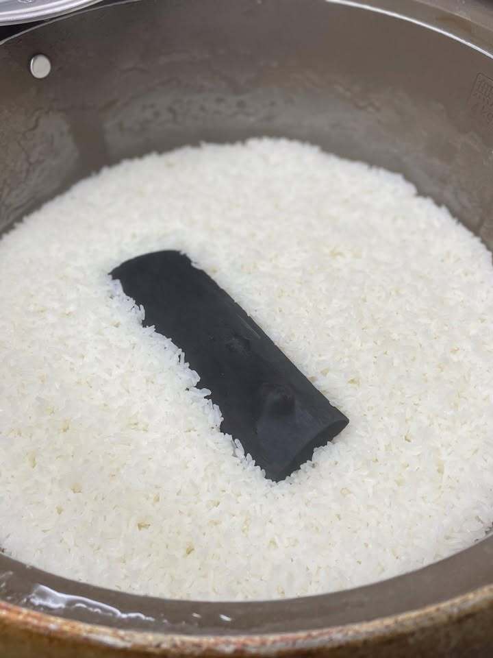 当店では備長炭を入れて炊飯することで、
